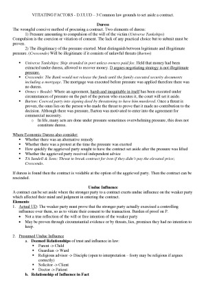 These notes helped me get a high distinction in Contract Law B. They are very thorough without overburdening you in the exam and hold all the content you need to get the extra marks. I have also included hypo structures within the notes so you can include a few prewritten lines. Topics Include: Termination Termination for Repudiation Termination for Delay Right to Elect Remedies for breach Limitations on award of Damages Specific Performance and Injunctions Restitution Liquidated Damages and Penalties Action for Debt Frustration Vitiating Factors Remedies for Vitiating Factors: Rescission Statutory Vitiating Factors Statutory Remedies for Breach