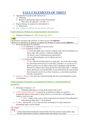 HD Notes used for final exam - cover all topics which include: - actus reus - mens rea - strict and absolute liability - murder - manslaughter - assault - defences: complete and partial - sexual assault - complicity: accessorial liability, joint criminal enterprise - property offences (ACT)
