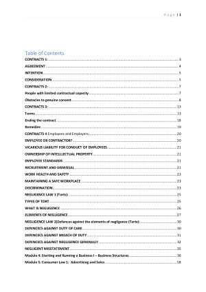 Contracts 1 Contracts 2 Contracts 3 Contracts 4 Negligence law 1 Negligence law 2 Starting and Running a Business I – Business Structures Consumer Law 1: Advertising and Sales Consumer Law 2: Faulty and Dangerous Products: Refunds and Other Remedies