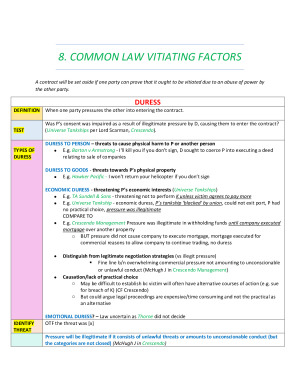 Topics include: 1. Termination 2. Common law damages 3. Liquidated damages and penalties 4. Equitable remedies 5. Restitution 6. Action for debt 7. Frustration 8. Common law vitiating factors 9. Statutory vitiating factors