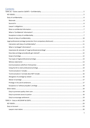 An extremely comprehensive set of notes on Legal Practice and Ethics, including all relevant statutory and case authorities - colour coded! Includes Table of Contents. This set of notes covers the following topics: - Duties owed to clients - confidentiality - Duty to account + costs - Duty to Administration of Justice - independence & candour (duty to the court) - Duty to Administration of Justice - Dealing with witnesses + Duties of Prosecution/Criminal lawyers - Duties owed to the Profession + other responsibilities - Complaints & Discipline