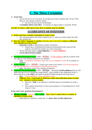 These LAWS2015 are a concise, detailed compilation of notes that go through each topic in equity. They are well formatted and go through the case law, commentary and key areas of law in great detail. They are also specifically designed for use during exams. These notes have served me very well (I got a Distinction) and I still use them when I practice law at work. Although the notes are from 2017, the course has not changed substantially and the notes are current. The notes are colour coded and easy to read/follow. Topics include: 1. What is equity? 2. Applications of the conscience of equity (breach of confidence, estoppel) 3. Remedial equity (specific performance, injunctions) 4. The nature and constitution of trusts 5. Operation of express trusts 6. Fiduciary obligations 7. Resulting trusts 8. Constructive trusts 9. Tracing 10. Charity