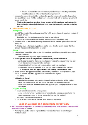 Very comprehensive finals notes that cover all the required topics. Main topics Damages: compensatory, expectation damages, loss of a chance, consequential loss (including remoteness and mitigation) Penalties doctrine Actions for debt Vitiating factors: rescission, duress, undue influence, mistake, misrepresentation, unconscionable conduct, under the ACL etc