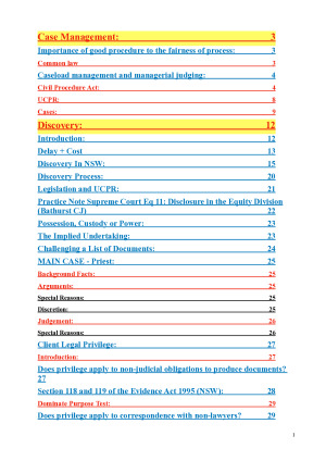 Extremely detailed and extensive notes on Contract Law. Using these notes I achieved a Distinction. Topics Include: - Case management - Discovery - Privilege - Urgent Applications - Injunctions - Mareva Orders - Anton Pillar Orders