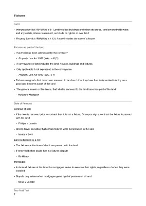 Extremely detailed and extensive notes on Property Law. Using these notes I achieved a Distinction. Topics: -Fixtures -Finders Keepers -Adverse Possession -Equitable Interests -Formalities -Priorities disputes -Co-ownership