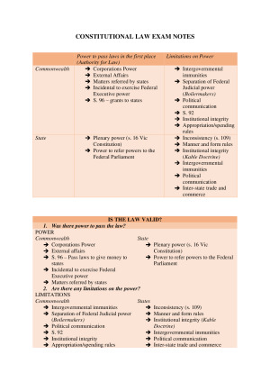 TOPICS - State Legislative Power - Constitutional technique: interpretation, characterisation and invalidity - Corporations power - External affairs power - Federal executive power (including spending powers) - Separation of judicial power - Institutional integrity of courts - Inconsistency - Intergovernmental immunities - Implied freedom of political communication - Freedom of Interstate Trade and Commerce