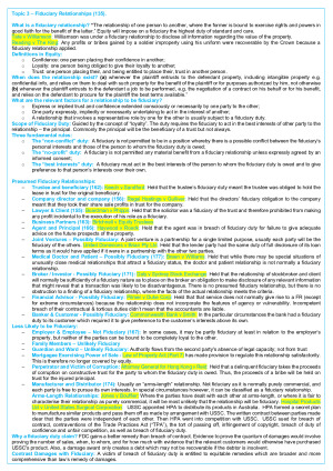 Current CDU Equity Notes - Complete Semester. Topics Covered: Week 1: Introduction to Equity Week 2: Equitable Property and Interests, Assignments in Equity, Priorities in Equity: Equity in Property Week 3: Fiduciary Relationships Week 4: Protection of Confidential Information Week 5: Fraud and Misrepresentation Week 6: Mistake in Equity Week 7: Undue Influence and Unconscionable Dealings Week 8: Estoppel Week 9: Part Performance, Penalty Obligations and Forfeiture Week 10: Subrogation Week 11: Marshalling Week 12: Damages in Equity and Equitable Compensation