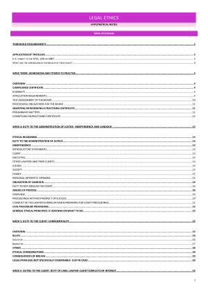 These notes cover the 'ethics' side of D&E. Topics include: - Admissions and Fitness to Practice - Duty to the Administration of Justice- Independence and Candour - Confidentiality - Duty of Care, Lawyer-Client Conflicts of Interest - Concurrent Client Conflicts of Interest - Successive Client Conflicts of Interest - Costs, Billing and Client Money