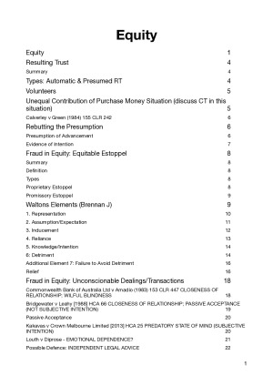 These notes include the following topics, resulting trusts, fraud (equitable estoppel, unconscionable dealings/transactions), fiduciary obligations, remedies, constructive trusts, and other topics included within those named.