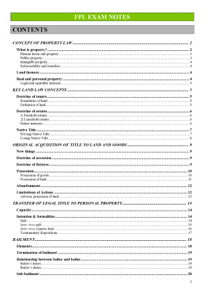 FULL SET OF NOTES PERFECT TO USE FOR EXAM Comprehensive set of notes perfect to take into the exam. Includes every topic of Foundation to Property Law, with both the lectures and textbook readings incorporated. There are cases and authorities for almost every principle, with easy to understand and useful case summaries spread throughout the text in bright colours. There are checklists for useful information and a handy contents page at the front. Take a look at the summary to see what subjects I go through and a quick preview of the first page.