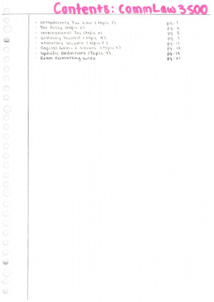 This is a comprehensive guide covering all relevant topics from the course that is a great tool for studying and helped me ace my own final exam. It is presented in the form of weekly notes summarising all of the readings, lectures and tutorial information, and includes a specific guide for exams addressing how to set out and answer exam questions for maximum marks based on tips from my teachers and things I learned along the way as well. It covers all assessable topics for the exam, including: 1. International Tax 2. Assessable Income 3. Non-Assessable Income 4. Deductions 5. Tax Accounting 6. Tax Entities It also covers topics that are not in the exam but which will help with weekly tutorial questions and assignments such as: 7. Taxation Policy 8. Ordinary Income 9. Statutory Income 10. Capital Gains Tax