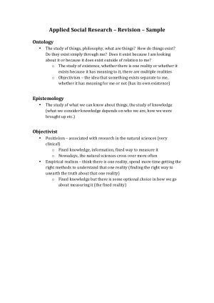 Includes useful revision on the foundation subjects of social research. Extremely useful for when studying and preparing for assessments and exams. Topic list: ontology, epistemology, subjectivist, constructionist, inductive and deductive reasoning and a useful summary.