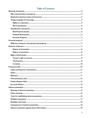 Includes: - Doctrine of Fixtures - Possessory Title - Adverse Possession - Doctrine of Tenure - Native Title - Doctrine of Estates - Leases - Equitable Property - Easements - Restrictive Covenants - Mortgages