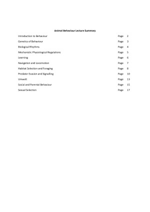 Introduction Genetics of Behaviour Biological Rhythms Mechanistic Physiological Regulations Learning Navigation and Locomotion Habitat Selection and Foraging Predator Evasion and Signalling Umwelt Social and Parental Behaviour Sexual Selection