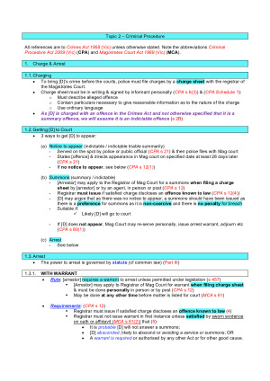 HD exam notes (88) for Criminal Law. Full comprehensive exam script with word-by-word answers to help with the exam. These combine lecture notes, weekly readings, and tutorial notes and topics covered include: 1. Criminal procedure 2. Criminal responsibility 3. Strict and absolute liability 4. Drug offences 5. Property offences 6. Attempts 7. Complicity 8. Corporate criminal liability