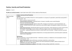 GEOG10001 Famine: the Geography of Scarcity summary of the whole subject, fit into tables based on the category of information. since the exam is take-home open book, it's crucial to have all the important information in one condensed form, but, this is also detailed and complete enough to revise from (and in case the exam asks something in detail) what's included: - main points - key concepts - key facts - example, places, cases topics covered: - famine, scarcity, and food production (lectures 1, 2, 3) - carrying capacity, collapse, and climate (lectures 4, 5, 7) - population, social factors, technology (lectures 6, 8, 9, 10) - agriculture, and economic and political factors (lectures 10, 11, 12 + guest lecture-case study) - overall summary