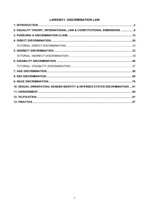 LAWS5011 Discrimination Law - Detailed Course Notes