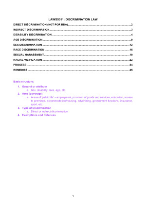 LAWS5011 Discrimination Law - Summarised Exam Notes