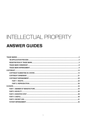 Unique and comprehensive answer guides for every topic in MLL410 Intellectual Property, created from scratch! If the booklet refers to 'page [no.]' it is referring to my corresponding notes, HD Notes: MLL410 Intellectual Property. I received the top mark (92) in Trimester 1 2019 :)