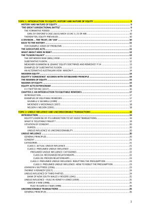 High Distinction (mark: 91) notes from both the lectures and textbook readings. This is literally all you'll need to ace Equity & Trusts.