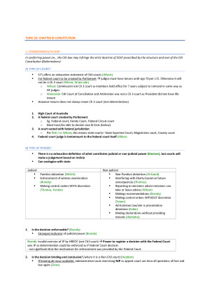 Topics covered: Fundamental Concepts, Institutions and Instruments State Legislative Power Manner and Requirements External Affairs Power Corporations Power State Immunity from Cth Laws Cth Financial Grant to States Inherent Power of the Executive Chapter 3 Constitution Implied Political Freedom Interstate Trade and Commerce s109 Inconsistency