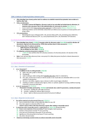 Topics Covered: Introduction Jurisdiction Instituting Proceedings Multiple Parties Multiple Causes of Action Class Actions Service and Appearance Pleadings Methods of Gathering Evidence Interlocutory Applications Disposition Without Trial Costs ADR