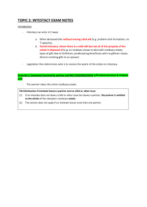 Uses tables and guided steps to explain and break down simple concepts for easy application during exam. This helped me during my final exam (problem question) and will also help you. Cases are included at the back of each topic for your reference/self study. Table of Contents Topic 2: Intestacy Topic 3: Wills and Will Making Topic 4: Mental Requirements Topic 5: Statutory Wills Topic 6: Execution Requirements/Formalities Topic 7: Exceptions to Formal Requirements Topic 8: Changing a Will Topic 9: Interpretation of Wills Topic 10: Gifts Topic 11: Family Provision Topic 12: Personal Representatives Topic 13: Grants of Representation Topic 14: Functions and Duties of Personal Reps Topic 15: Powers, Rights and Liabilities of PRs