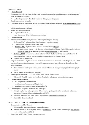Topic 5: Offences against the person (comm law+statutory) Topic 6: Sexual offences Topic 7: Homicide (murder) Topic 8: Homicide (manslaughter) Topic 9: Defences