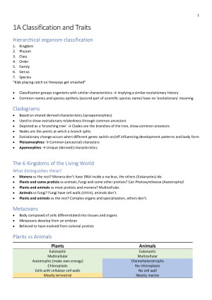 Complete Plant and Animal Biology Notes compiled by lecture topic and covering all important and examinable content. Topics include: * Classification and Traits * Transport Systems * Animal Development and Reproduction * Resources, Phenology and Environmental Change * Marine Life * Alternative Lifestyles * Reproduction * Being a Chordate * Metabolism, Energetics and Movement * Gas Exchange * Water, Solutes and their Circulation * Digestion * Temperature Regulation and Extreme Environments * Diversity of Plant and Microorganism Life * Photosynthesis * How Plants Sense Their Environment * Plant Water Relationships * Plant Water Use and Dryland Salinity * Plant Nutrient Acquisition * Nutrients in Agriculture * Pollination and Herbivory * Co-evolution of Australian Plants and Animals * Advent of Farming and Hunting * Land Use * Exam Prep
