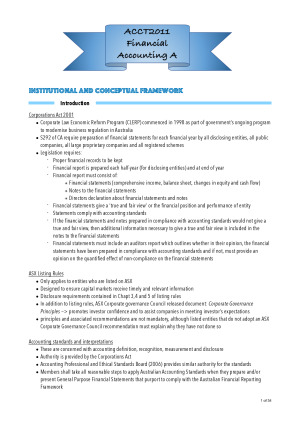 A combination of lecture slides, tutorial worksheets and textbook summaries! Covers: - Institutional and conceptual framework for financial reporting - Accounting for assets - property, plant, and equipment - Accounting for assets - intangible assests - Accounting for leases - Provisions; ethics - The choice of accounting methods - Accounting for income tax - Accounting for financial instruments - Equity - Accounting for employee benefits - Accounting for the extractive industries - Measurement of profit - Reporting comprehensive income