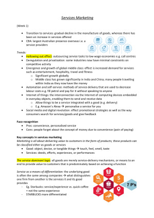 Topics Include: - Introduction to Services - Blueprinting process; Managing the Physical Environment - Consumer Decision Process - Pricing Services - Customer Satisfaction & Service Quality - Service Failure and Recovery - Retaining Customers - The Service Brand - International Services Marketing - The Service Communications Mix - Digital Marketing - Managing Customer Services