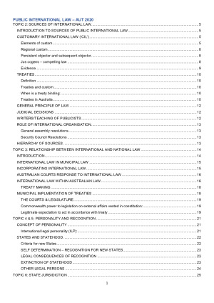 Comprehensive set of Public International Law notes. Received HD in final exam. Includes: - Case summaries of every important case you will need for the final exam. Covers most of the essential/compulsory readings required under the Learning Guide. - Revision notes for all topics Please refer to the first 4 pages for an extensive breakdown of all the topics. Can confidently say that this is the best set of notes i have prepared to date. You will easily get through PIL with flying colours.