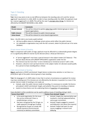 Exam style notes, including appropriate legislation and case law citations. Notes include the following topics: - Introduction and overview - Jurisdiction - Standing - Reasons - Grounds for judicial review - ultra vires - Grounds for judicial review - procedural fairness - Grounds for judicial review - jurisdictional error - Privative clauses - Remedies - Merits review