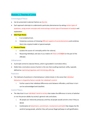 HD Notes for 'Criminology' unit undertaken at Victoria University in Semester 2 2020. Includes Modules on: - Theories on Crime - Sociological Explanations for Crime - Conceptions of Crime and Harm - Sexual Offences - Crime and Inequality - Crime and Social Differences - Victims and Victimology