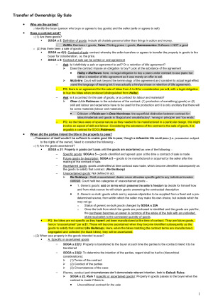 Comprehensive and well-organised notes based on lectures, tutorials and textbook. Received a Distinction grade for the course. Grey highlight = general application; Yellow highlight = tute question application The content of the notes are as follows: - Topic One: (A) The Concept/Function of “Property” and (B) Intro to Real Property - Topic Two: Personal Property – Introduction to Choses in Possession - Topic Three: Personal Property – Introduction to Choses in Action - Topic Four: Assignment and Disposition of Interests - Topic Five: Assignment and Disposition of Interests - SOGA & PPSA
