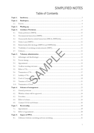 These insolvency law notes are concise and clearly structured to assist in exam preparations (especially for closed book exams). A well formatted and comprehensive version of these notes that I used for study throughout the semester is also available for sale separately.