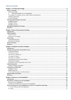 Comprehensive subject notes that are useful for both tutorial, lecture and exam preparation!! These notes are you will need to achieve a high grade in this subject. Topics covered include: - Introduction - Macro-Environment Analysis, PESTEL, Forecasting - Industry and Sector Analysis - Resources and Capabilities - Stakeholders and Culture - Business Strategy and Models - Corporate Strategy and Diversification