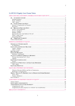 LAW3111 Equity Notes - Full Exam Notes HIGH QUALITY
