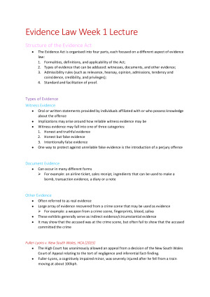 Types of evidence Competence and compellability Relevance Discretionary exclusions Admissibility Hearsay evidence Opinion evidence Identification evidence Admissions Tendency and coincidence evidence Credibility and character evidence Privileges