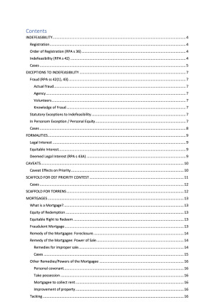 Notes Optimised for exams and assessments! Bookmarks prepared and all links are embedded. Click the referenced law/authority and get redirected to the NSW Legislation site or the page in the document where the case is! Quickly navigate to the topics you need because key words are also hyperlinked. Don't waste time on your assessments. Includes a legend to understand the formatting, a handy guide to using the notes. Topics: - Indefeasibility - Exceptions to indefeasibility - Formalities - Caveats - Mortgages - Easements - Covenants - Leases - Assignments Also includes: - Case authorities - Remedies - Scaffolds
