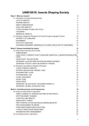 - Notes on all examinable lectures and assigned readings from each module - Topics include: Introduction to Insects, Insects and Climate Change, Insecticide Resistance, Bee Biology, Insects and Literature, etc. - Notes are organised by lectures, extra information and synthesis from different resources and readings - Hand-drawn diagrams to explain concepts or simplify topics - Notes act as a supplementary to provide an overview of what to know for the exam and support understanding through simplification and explanation and can be added onto