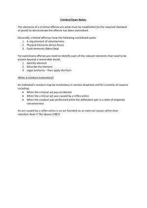Very thorough Criminal Law notes. Includes all relevant tests, cases, breakdowns, intervening event options and elements to nail exam questions relating to: Murder Causing Harm/Serious Harm Theft/Attempts Rape Defences Complicity