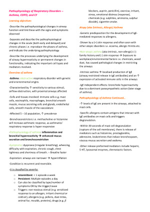 Topics include: Week 1: Asthma, COPD and Cystic fibrosis Week 1-4: Respiratory devices and Asthma Week 2: Pharmacology of respiratory disorders Week 3: Medicinal Chemistry of Respiratory Drugs Week 4: Chronic Obstructive Pulmonary Disease, Cystic Fibrosis Week 5: Pathophysiology and Pharmacology - ear, nose and throat Week 6: OTC Primary Care, Respiratory Care Management OTC Medications
