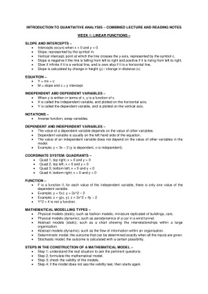 Includes weekly notes on: - Topic 1: Linear Functions - Topic 2: Simultaneous Linear Equations - Topic 3 & 4: Matrix Algebra - Topic 5 & 6: Non-Linear Functions - Topic 7: Differential Calculus - Topic 8: Optimisation - Topic 9: Applications of Differential Calculus (One Independent Variable) - Topic 10: Partial Differentiation (Differentiation with 2 or More Independent Variables) - Topic 11: Unconstrained Optimisation with 2 Independent Variables - Topic 12: Constrained Optimisation