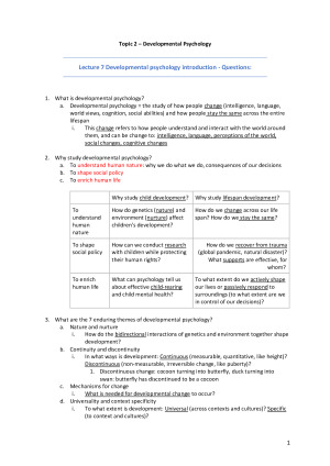 These notes helped me achieve an H1 (83) in MBB2, and I hope they can help you do the same! They are an excellent resource for revision, written in simplified easy-to-understand English to help you grasp difficult concepts, and includes all the content you need to know for the exam for Topics 1 to 4. Many lecture notes have been written in the form of a Q&A format (with questions written by myself), making it easy for testing yourself throughout the semester as well as exam revision. The content covered includes: - Topic 1: Mental Health and Stigma (lectures 1-6); - Topic 2: Developmental Psychology (lectures 7-12); - Topic 3: Social Psychology (lectures 13 - 18); and - Topic 4: Personality Psychology (lectures 19 - 24). I hope you find these notes helpful!