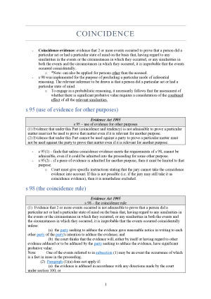 Great and succinct HD study notes for CPEP. Includes case summaries and key legislation. Topics: - Proceedings - Competence and Compellability - Relevance - Credibility - Opinion - Hearsay - Identification - Tendency - Coincidence - Character - Warnings - Mandatory and Discretionary Exclusions - Oaths and Affirmations - Definitions - Other Miscellaneous Notes