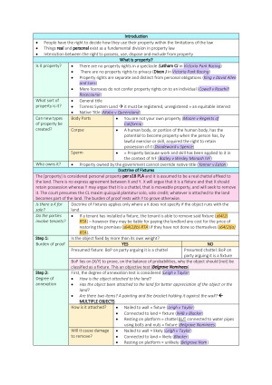 Step-by-step property law notes with topic sentences. Topic covered: - Concepts of property - Doctrine of Fixtures - Fragmentation - Law of finding (lost property) - Doctrine of Tenure & Estates - Leasehold Estates and Licences - Lease Covenants - Assignments - Adverse Possession - Sale of Land/Formalities - Easements - Mortgages