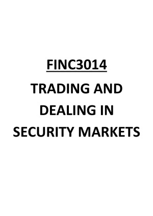 FINC3014 Trading and Dealing Securities Markets COMPLETE NOTES