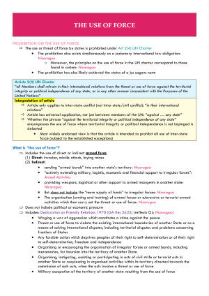 These PIL notes cover the entire semester of content and are in a form that is very easy to follow, with key principles in highlighted text boxes to make it easy to retain the most important information. I attended all lectures, tutorials and did all readings and also relied on my own research and other notes in order to create them. The topics included are: - Sources of international law - The law of treaties - International law & domestic law - International legal personality, statehood and self-determination - Title to territory - State jurisdiction - Immunity from jurisdiction - State responsibility - The use of force - Implementation, enforceability and accountability
