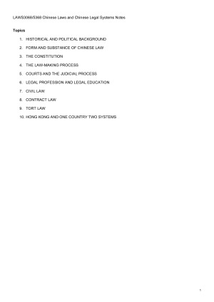 - LAWS3068/5368 Chinese Laws and Legal Systems - Distinction Notes